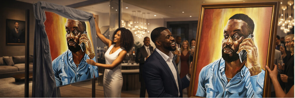 I create one-of-one bespoke portrait commissions, rooted in presence identity and lived experience.